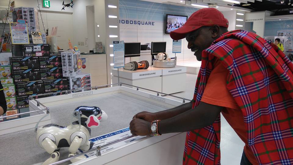 に触発されて、ロボスクエアにてアイボとペッパー君と戯れるマサイ。